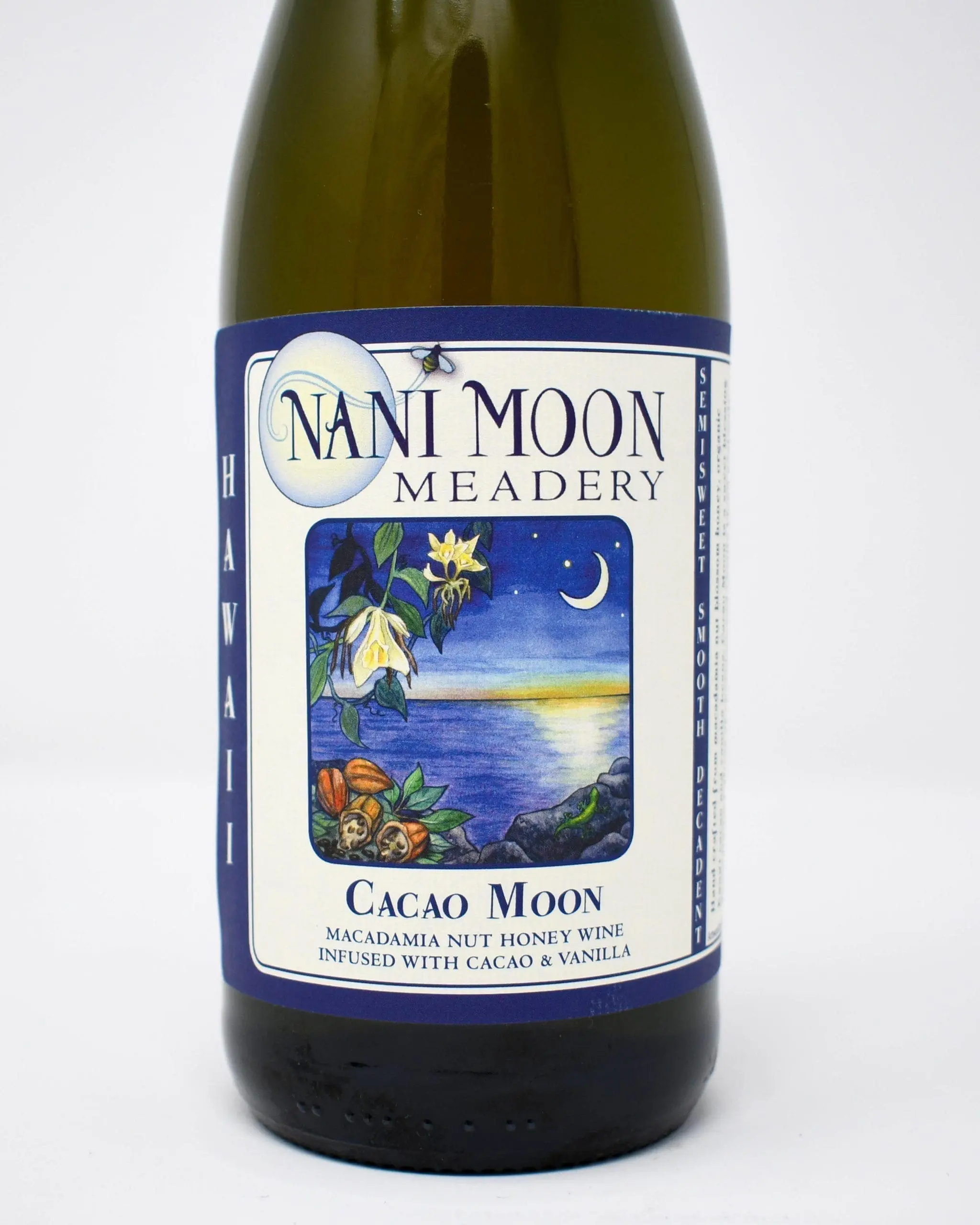 Hand crafted from Macadamia nut blossom honey, organic Kauai cacao and vanilla beans. Hints of chocolate and vanilla blend perfectly to create a sparkling, semi-sweet honey wine.